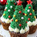 Christmas Tree Cupcakes 🎄 Christmas Tree Cupcakes 🧁✨ Festive chocolate cupcakes topped with buttercream trees, candy ornaments, and a star—perfect…