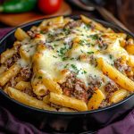Cheesy Philly Cheesesteak Pasta 🥩 Cheesy Philly Cheesesteak Pasta 🧀🍝✨ A creamy, cheesy pasta inspired by the classic Philly cheesesteak—loaded…