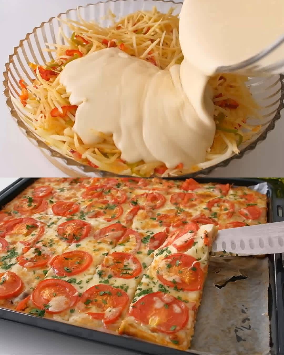 This Baked Potato & Veggie Pie is a simple, hearty, and wholesome dish made with grated potatoes, fresh vegetables, a creamy batter, and topped with juicy tomato slices and herbs. Itβs light yet satisfying, perfect for lunch, dinner, or even as a healthy snack for the family.
