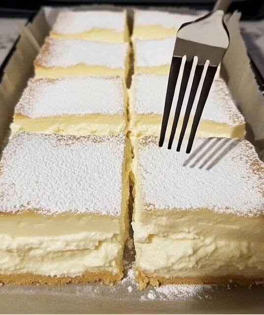- Finish & serve: Dust generously with powdered sugar, cut into neat squares, and serve chilled.