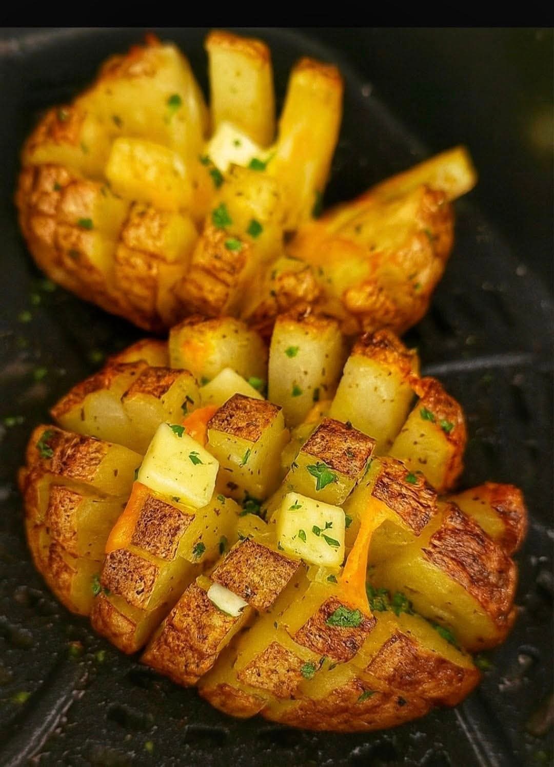 These crispy, golden Hasselback potatoes π₯ are sliced thin and stuffed with melty cheese π§, then roasted to perfection. A stunning side dish thatβs both flavorful and elegant. π