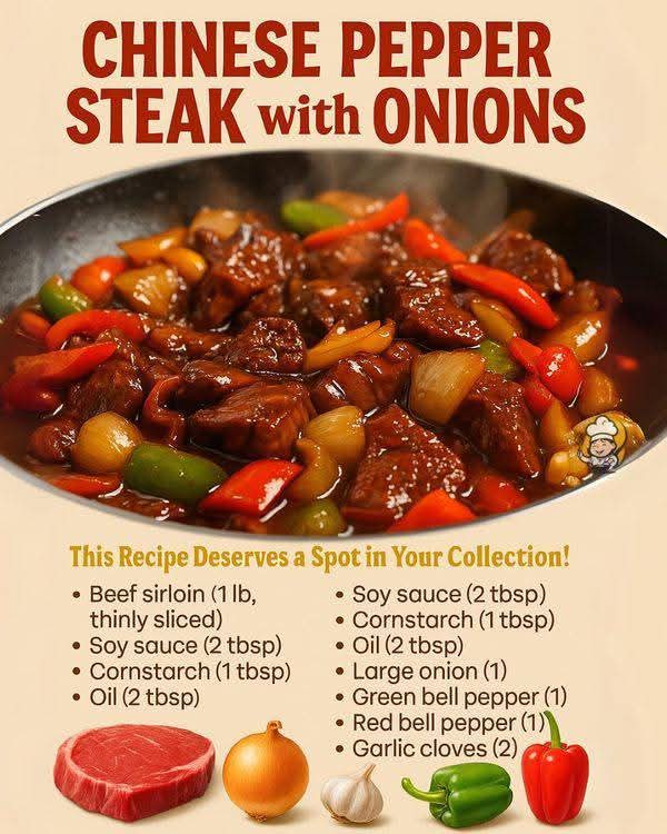 Chinese Pepper Steak with Onions is glossy, juicy, and vibrant—a stir-fry that satisfies every craving! 🍖🌶️🧅✨