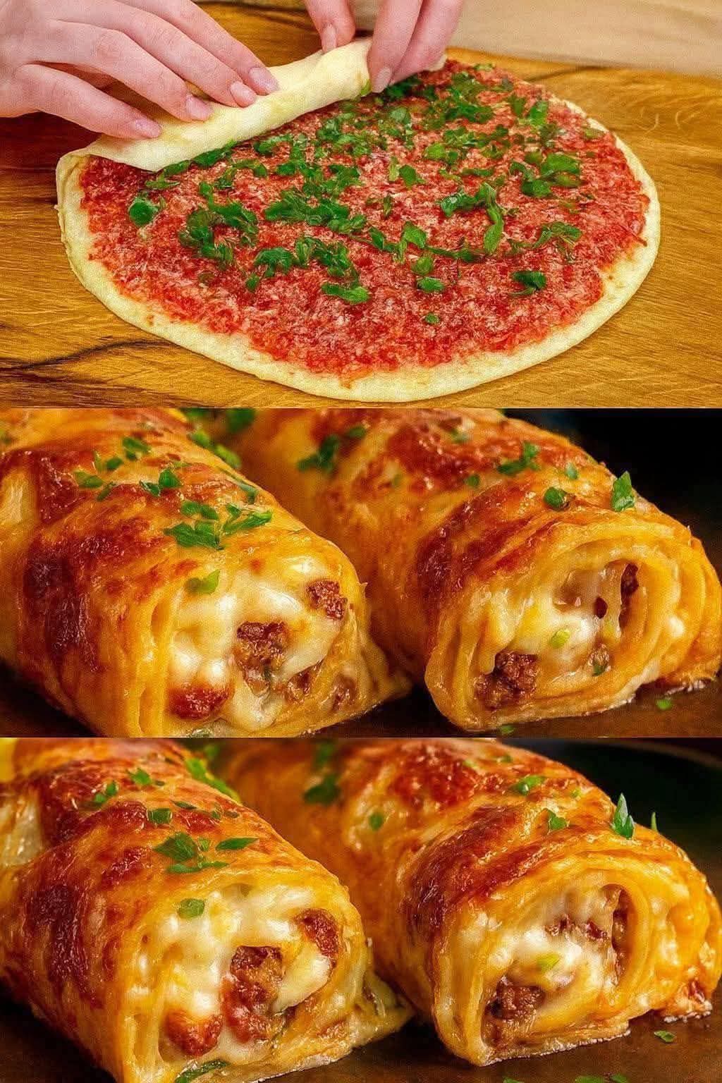 Pizza Roll-Ups are crispy, cheesy, and irresistibleโa rolled-up bite of comfort and joy ๐๐ง๐ฟ๐ฅ.