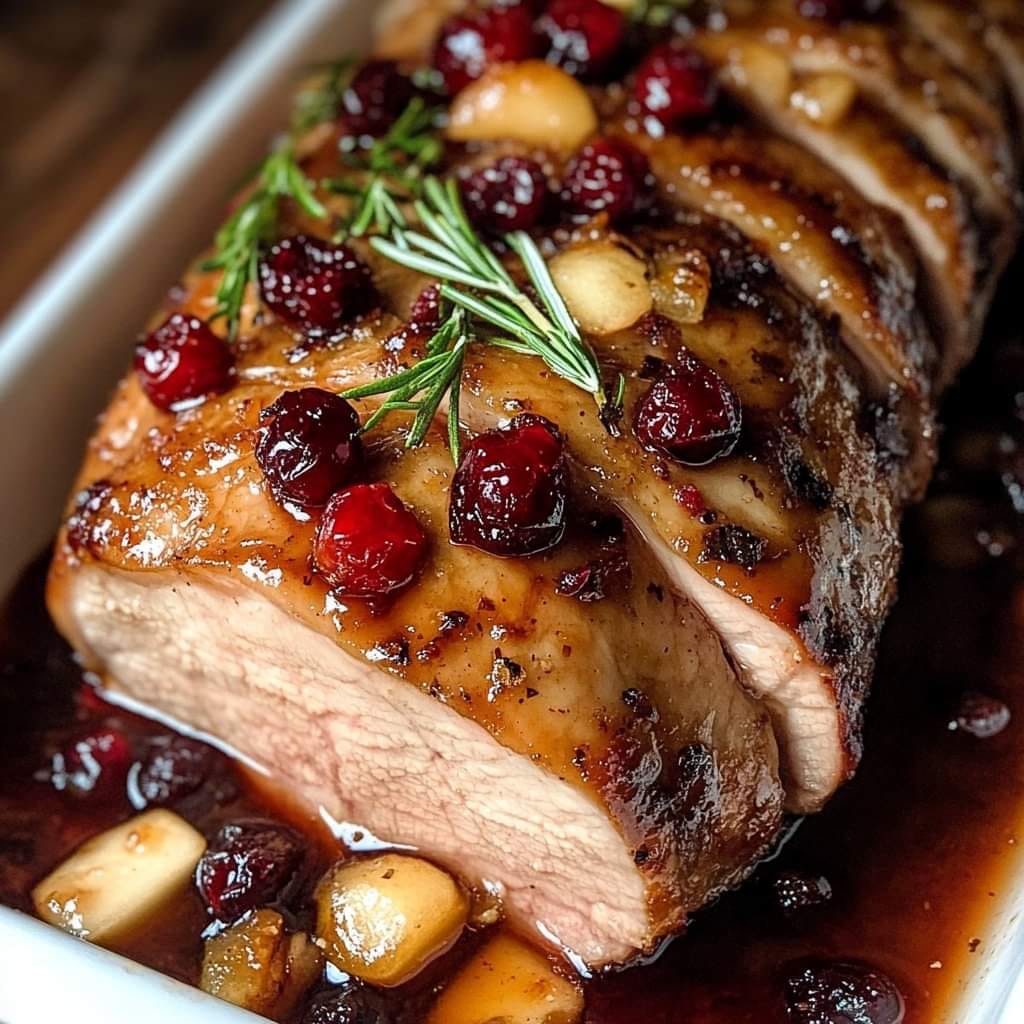This Pork Loin with Cranberry-Dijon Sauce and Apple Cider Glaze ππ―π is juicy, golden, and full of flavor. A perfect centerpiece for festive dinners or cozy family meals π.