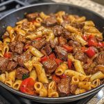 2. Season & sear: Season steak cubes with salt, pepper, garlic powder, and smoked paprika. Sear 4–5 minutes until browned and to desired doneness. Remove and set aside.