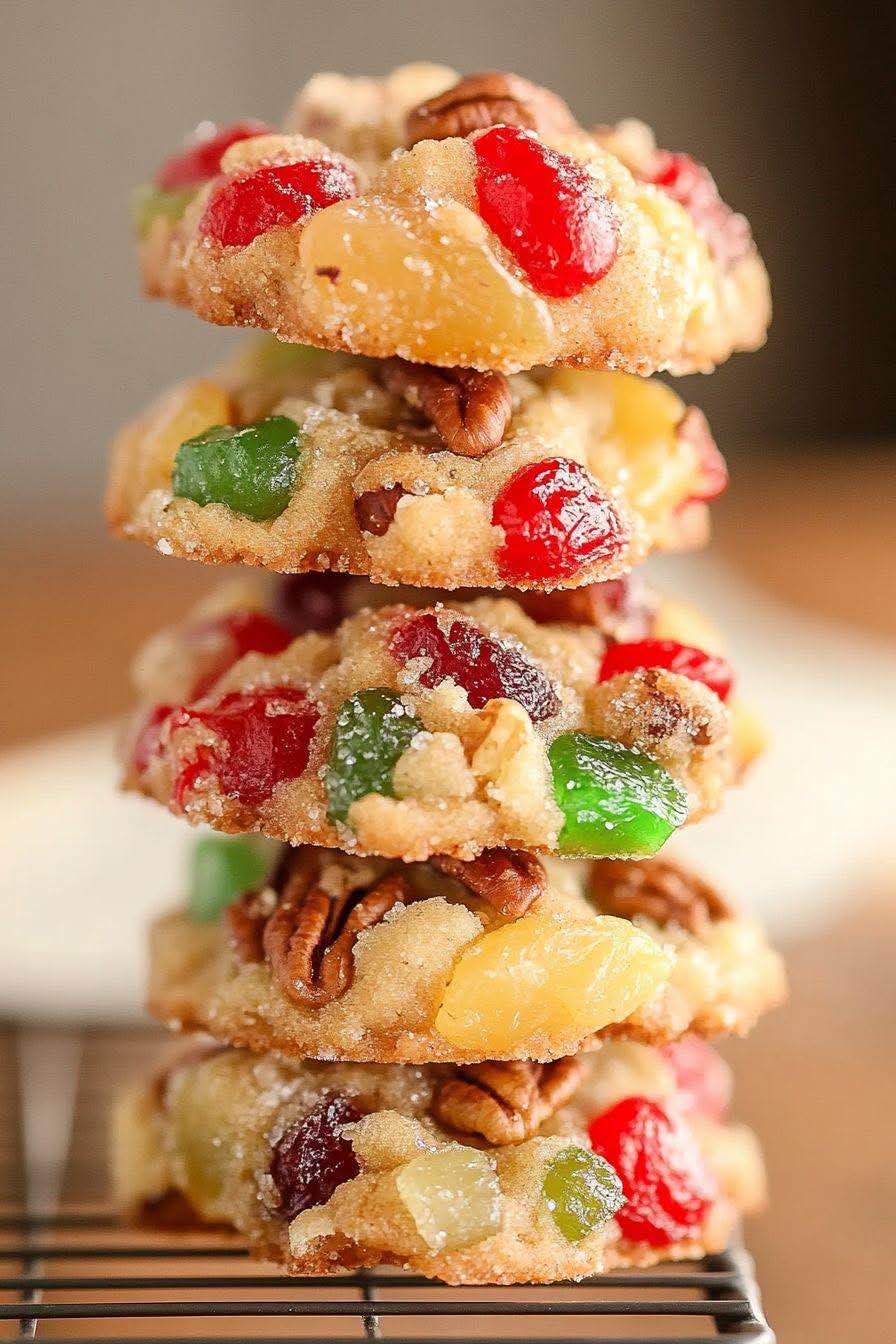 These colorful cookies are packed with candied fruits and crunchy pecans—perfect for holiday trays and cozy gatherings!