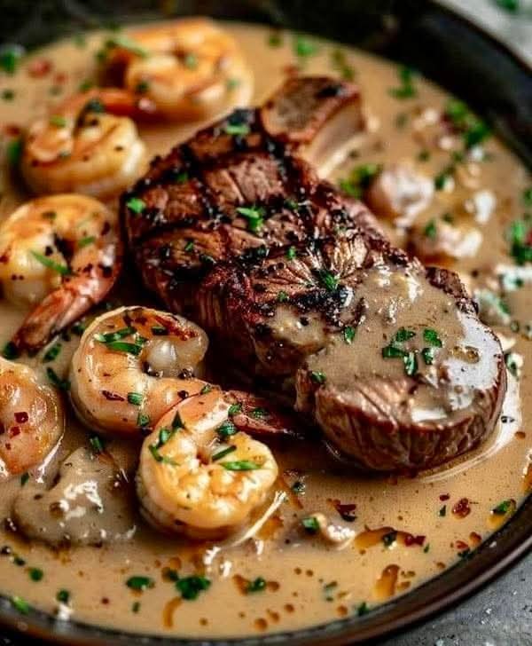 This indulgent Surf and Turf recipe pairs juicy steak with succulent shrimp in a rich, spicy Cajun cream sauce. A perfect dish for special occasions or gourmet comfort food nights!