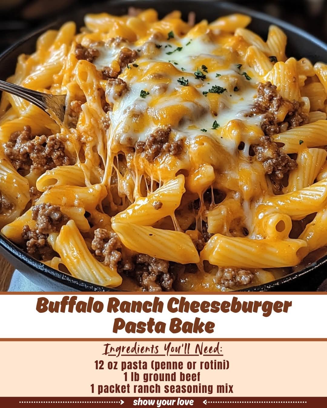 🧀 Buffalo Ranch Cheeseburger Pasta Bake – Your Next Family Favorite 🧀