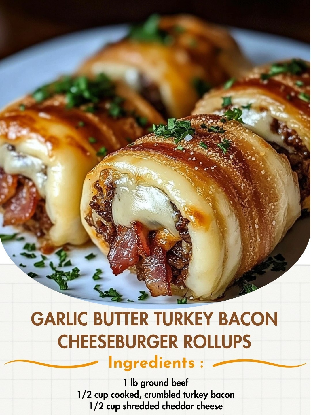 🧄🥓 Garlic Butter Turkey Bacon Cheeseburger Rollups 🧀🍔
