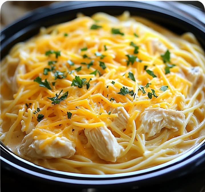 🍗🧀 Slow Cooker Cheesy Chicken Spaghetti 🍝