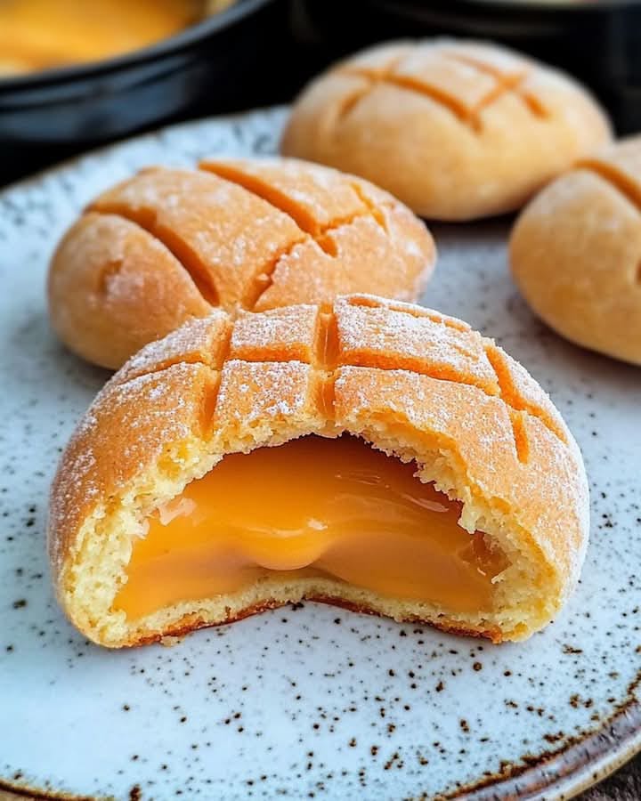 ✨ A delightful fusion of Japanese melon pan and Thai tea custard—perfect with a cup of tea!