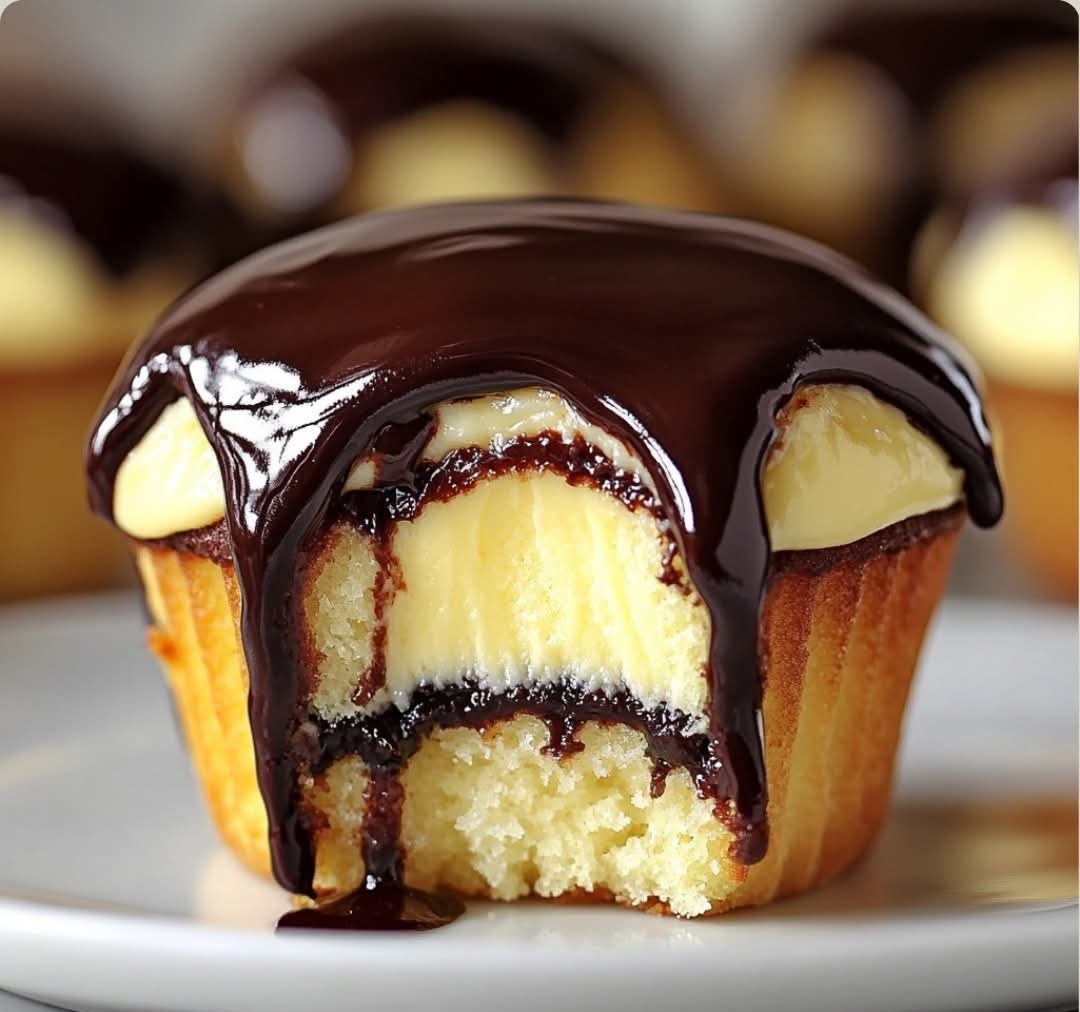 Moist vanilla cupcakes filled with creamy custard and topped with rich chocolate ganache—mini versions of the classic Boston Cream Pie!