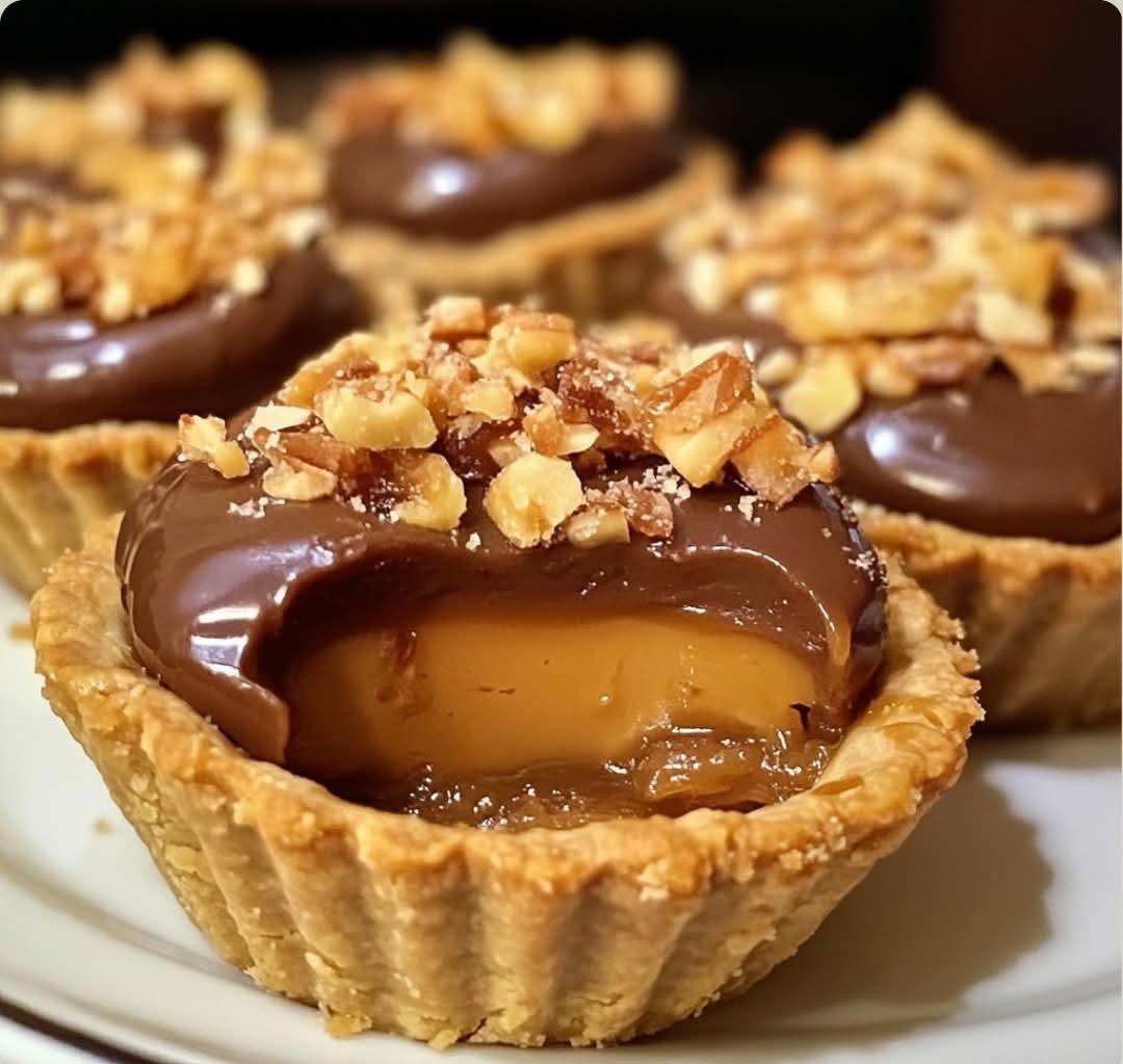 - Layer Caramel & Crunch: Spoon ~1 tsp caramel into each crust. Sprinkle ~1 tsp crushed Butterfinger. Press gently.