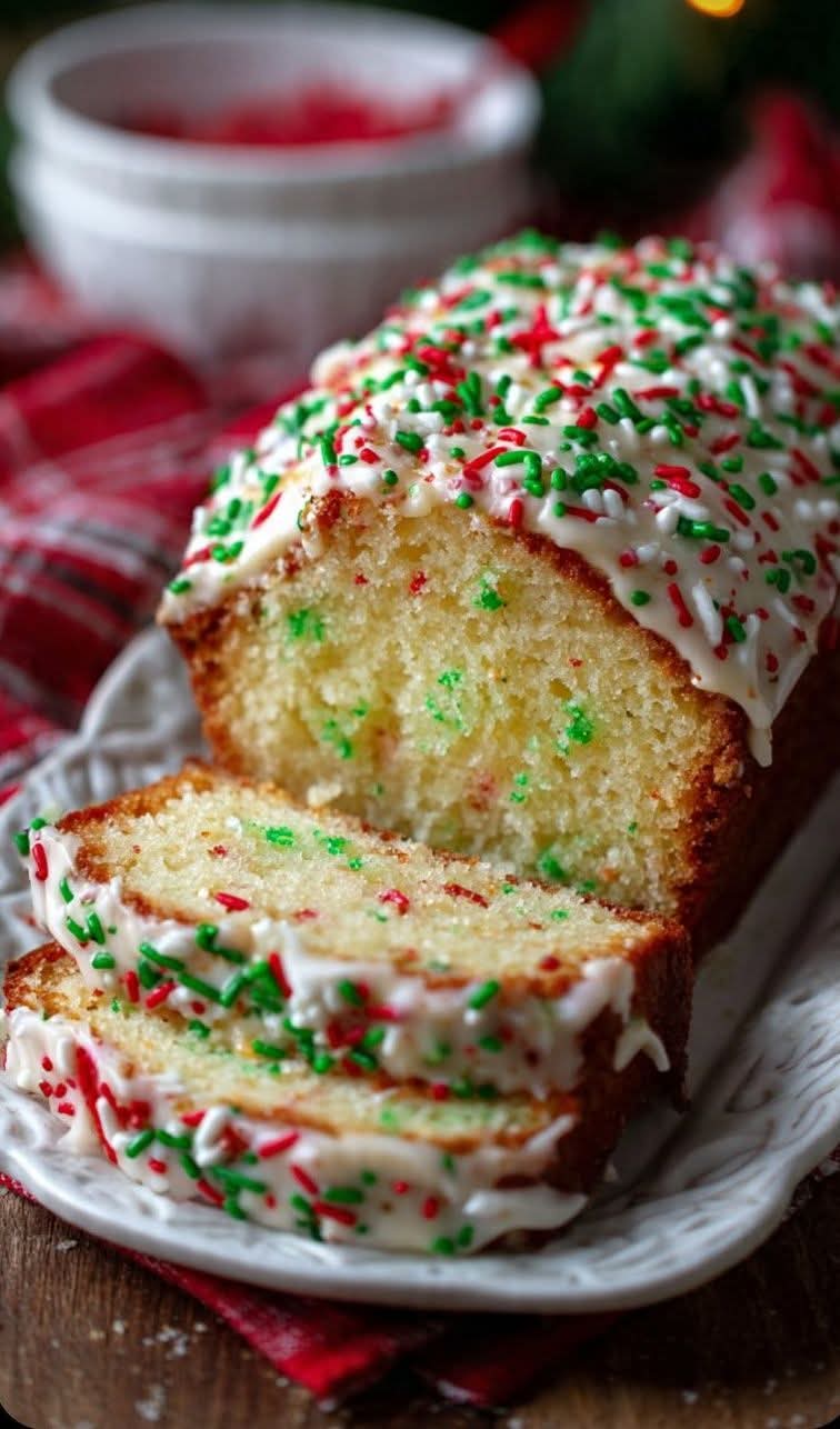 🎄 Holiday Sprinkle Vanilla Loaf Cake 🍰✨