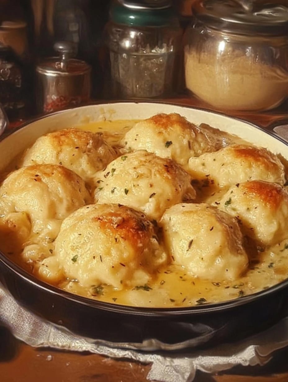 Caption: “Old-Fashioned Chicken and Dumplings—comfort in a bowl, just like grandma made! 🥰😍🍲”