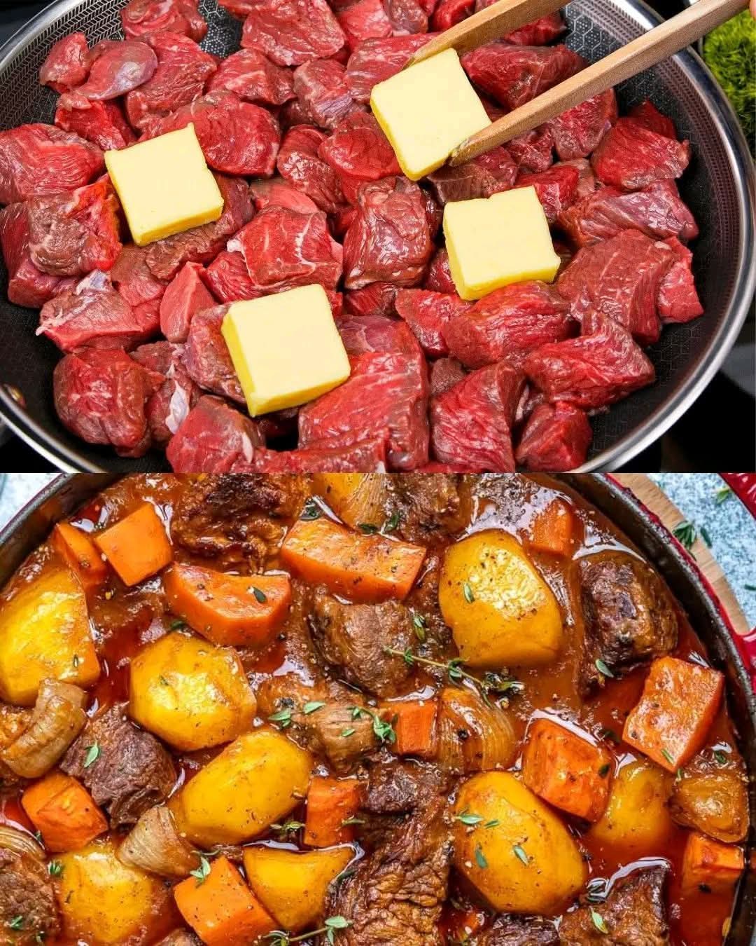 Caption: “Easy Beef Stew—tender beef, hearty veggies, and rich broth 🍲🥩🥕✨”