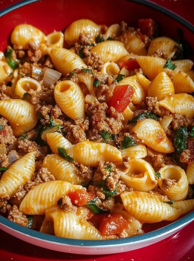 Pasta Shells with Ground Beef & Tomatoes 🍝🥩🍅✨