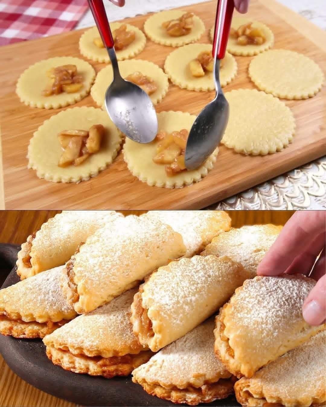 Caption: “Classic Apple-Filled Butter Pastries—flaky crust, sweet apple filling, timeless flavor 🍏🥐✨”