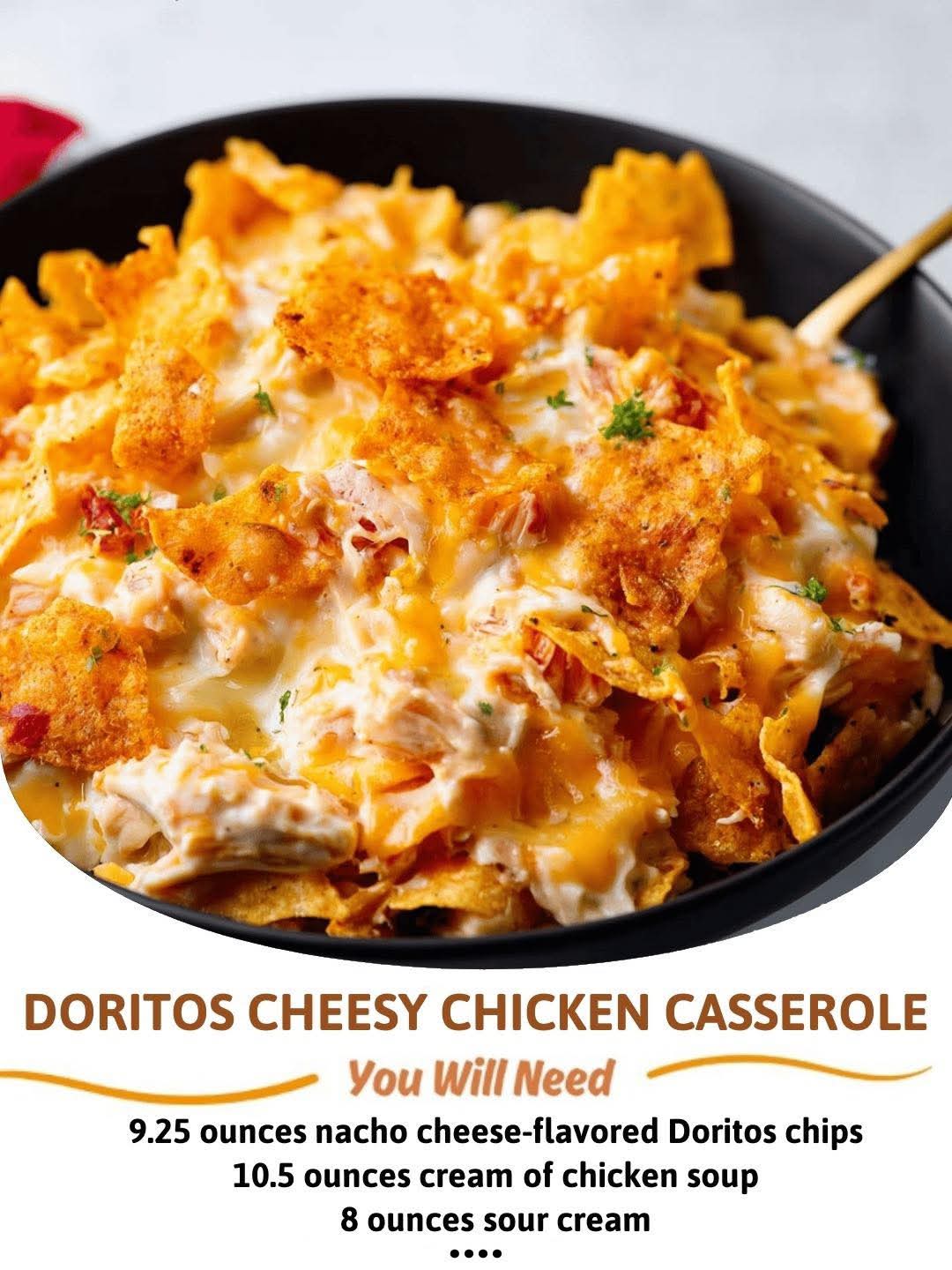 Caption: “Doritos Cheesy Chicken Casserole—bold, creamy, and crunchy in every bite 🧀🌽🍗🔥”