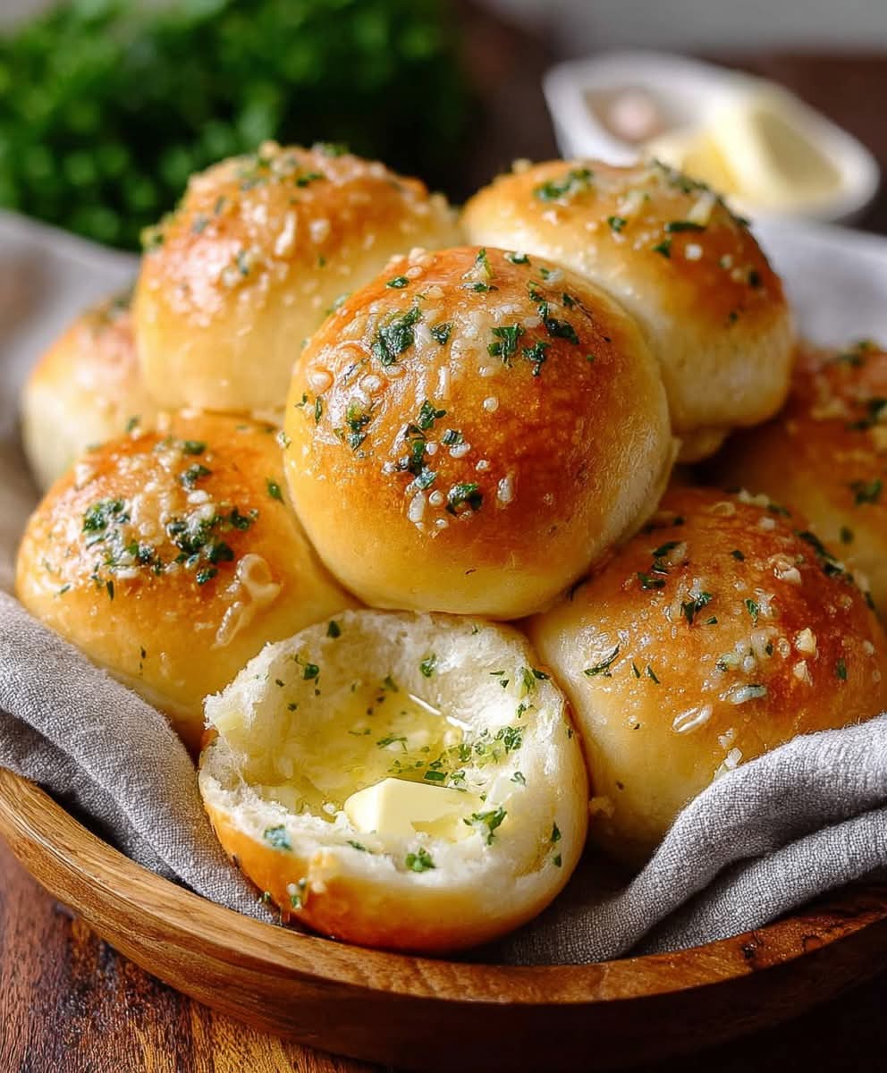 Golden, fluffy rolls brushed with garlicky butter and parsley—warm, cozy, and perfect for sharing at dinner or gatherings.