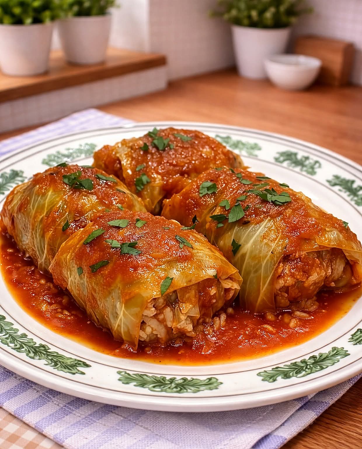 Caption: “🥬 Polish Gołąbki—tender cabbage rolls simmered in tomato sauce, pure Sunday comfort 🍲✨”