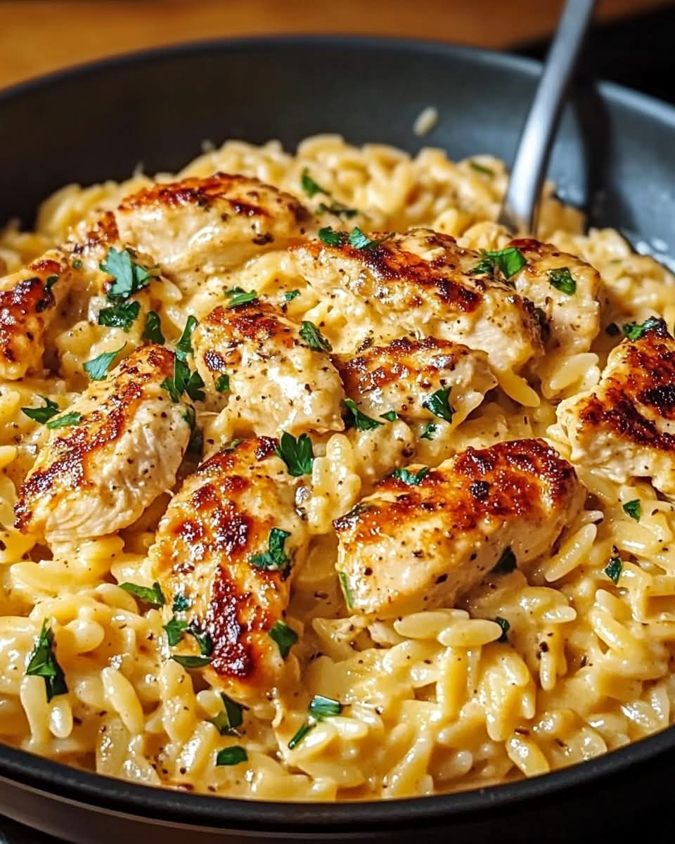 Creamy Cajun-Spiced Chicken Alfredo Orzo Skillet with Parmesan Bliss