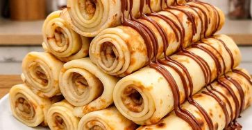 Chocolate Filled Crepes Homemade Chocolate Filled Crepes 🍫🥞✨ There’s nothing cozier than a plate of soft, warm crepes rolled up…