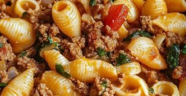 Pasta Shells with Ground Beef & Tomatoes Pasta Shells with Ground Beef & Tomatoes 🍝🥩🍅✨ A simple, hearty pasta dish…