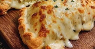 Baked Chicken Alfredo Calzones with Gooey Cheese Baked Chicken Alfredo Calzones with Gooey Cheese 🥖🍗🧀✨ Golden, cheesy calzones filled with…