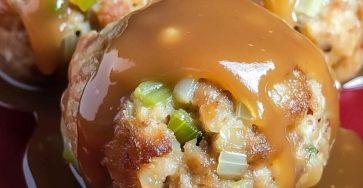 !DOCTYPE html> 🍽️ Savory Stuffing Balls with Gravy 🍽️ Savory Stuffing Balls with Gravy Crispy on the outside, tender inside…