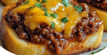 Cheesy Sloppy Joe Toast Cheesy Sloppy Joe Toast 🥩🧅🍞🧀✨ A quick and comforting twist on the classic sloppy joe—savory beef…