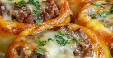 Cheesy Meat-Stuffed Pasta Rolls ✨ Introduction These savory pasta rolls 🍝 are filled with seasoned ground beef 🥩, topped with…
